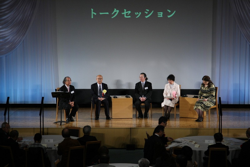 講演と事例紹介をしていただいた上記お二人に加えて、今回の活動賞受賞の「掛川の現代美術研究会」山本代表、活動賞の角替選考委員長、司会のSBSパーソナリティの澤木久雄さんが参加してトークしていただきました。