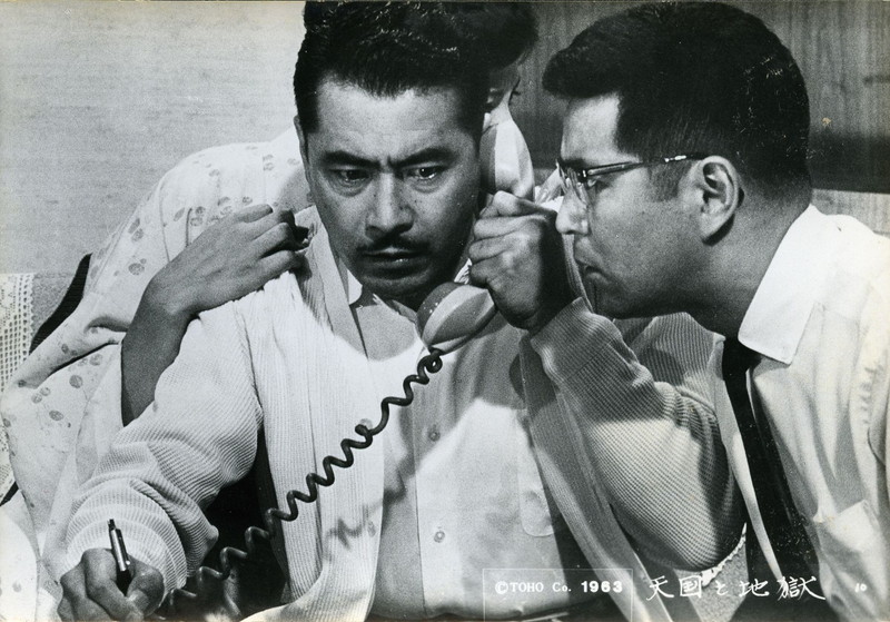 アメリカの推理小説作家エド・マクベインの「キングの身代金」から想を得たサスペンス映画の傑作。「靴メーカーの重役(三船敏郎)は自分の息子と間違えられ運転手の息子を誘拐されて、身代金を要求される。人命か、会社の実権か二者択一を迫られて苦悩する。結局身代金を払うことになり、犯人の指示通り、特急第2こだまに担当警部(仲代達矢)らと乗り込む。そして・・・」 映画の前半、権藤邸で犯人からの脅迫電話を下に、権藤と息子、妻(香川京子)、運転手(佐田豊)、腹心の部下(三橋達也)、警部と部下の捜査員らが繰り広げる舞台劇のような演出はヒューマニズム溢れ感動的です。 疾走する特急第2こだまの洗面所の窓7センチの隙間からカバンに入った身代金を投げ落とす場面は黒澤監督独自の複数カメラの撮影で、捜査員の迅速な動きと重なり、臨場感と手に汗握る場面です。 身代金を入れたカバンに仕込んだカプセルが燃え、煙突から桃色の煙が出る場面は、部分カラ―の技法を取り入れ印象的です。ここから焼却場が割り出され、犯人(山崎努)の特定が一挙に進んでいきます。