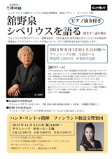 フィンランド在住のピアニスト・舘野泉氏を講師に招き、今年生誕150周年を迎えるフィンランドの国民的作曲家シベリウスについて、ピアノ演奏を交えながらお話いただきます。