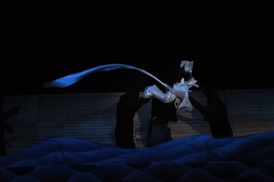 女を連れて道成寺へ向かった安珍を追う清姫。渡し守に拒まれて川を渡れず、恋人を慕って泣き伏していた姫が、やがて恋人に裏切られた憎しみから大蛇となり、安珍を取り殺そうと激流を泳いで行く…人形の激しい動き、三味線の力強さに圧倒される人気演目です。