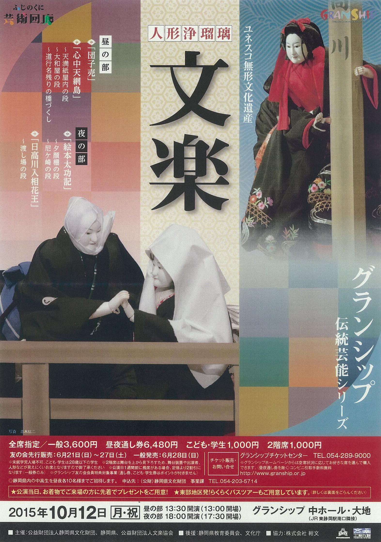 | 主催 | 公益財団法人静岡県文化財団、静岡県、公益財団法人文楽協会 |