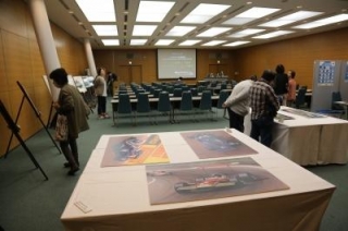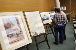 会場内には、島村さんと、(株)タミヤ所蔵のボックスアートが展示され、来場者のみなさんは熱心にご覧になっていました。