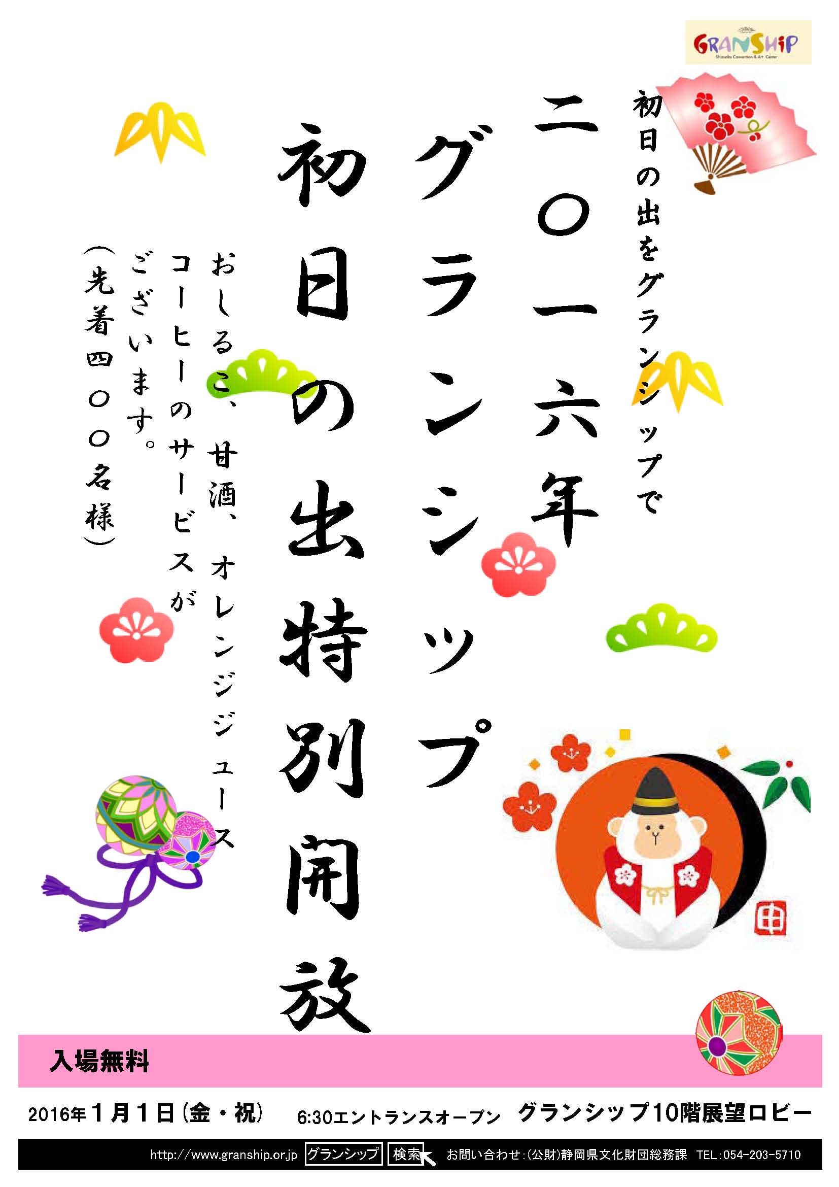 グランシップ10階展望ロビーを特別解放。初日の出と富士山を同時に見ることができます。先着順で、コーヒー、おしるこなどをご用意しています
