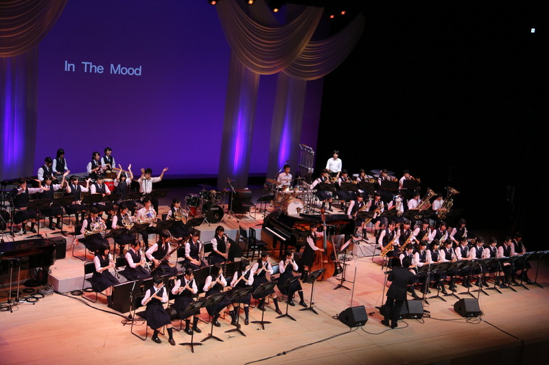 大勢の観客を前に、いつもの吹奏楽とはちょっとちがうオトナの雰囲気を目指した演奏に挑戦した高校生たち。