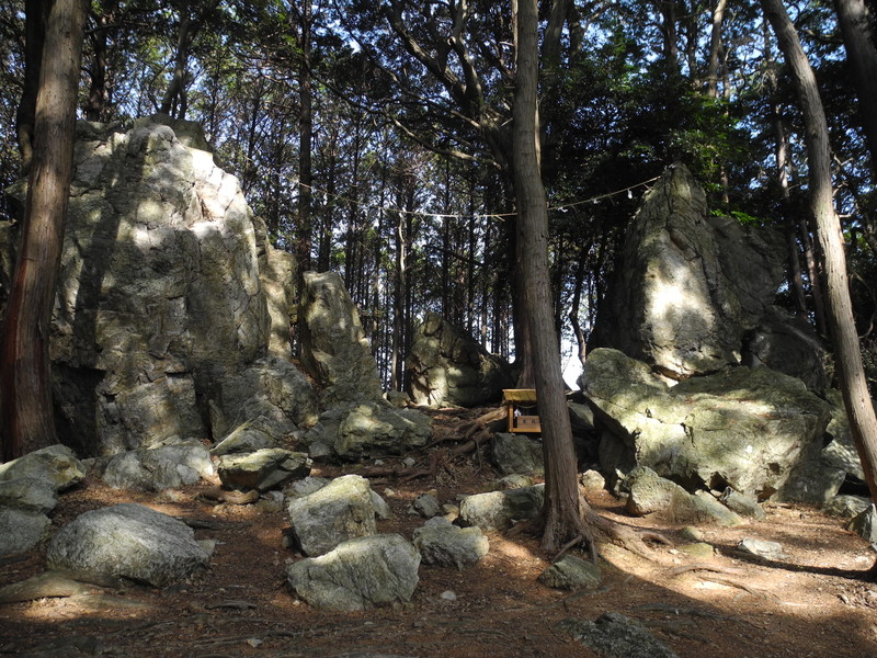 高さ41メートルの円錐形をなす小丘陵の頂上に、40m四方にわたって数十個の巨石が点在する古墳時代の