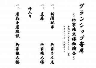 その第一弾は、その笑顔とテクニックで会場中を笑いの渦に包む柳家権太楼。“笑いに来た”お客様の期待に全力で応え、手堅いネタでも笑わせる実力派爆笑王。「グランシップ寄席」として、“独演会”は8年ぶり。