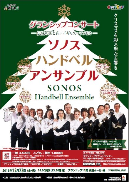 1990年にサンフランシスコで結成以来、ハンドベル界をリードしているソノス・ハンドベル・アンサンブルがクリスマスにちなんだ曲等を演奏。