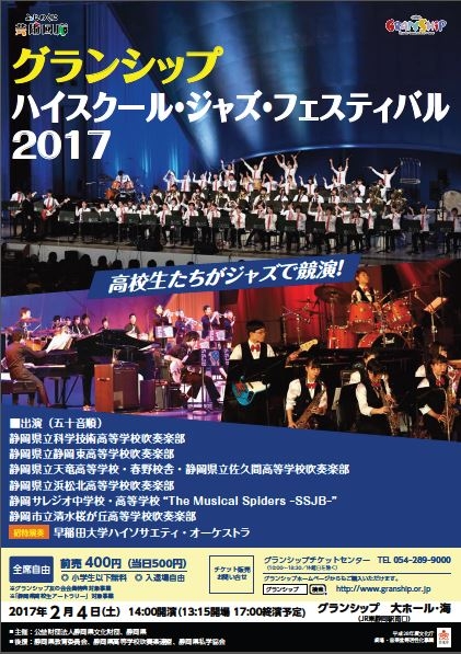 2月4日(土)グランシップ大ホール・海にて、「グランシップ ハイスクール・ジャズ・フェスティバル2017」を開催しました。