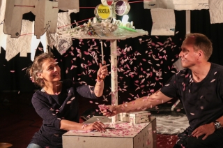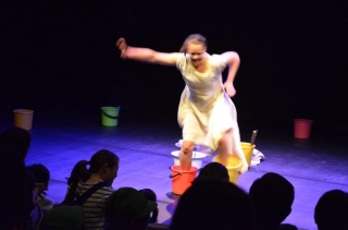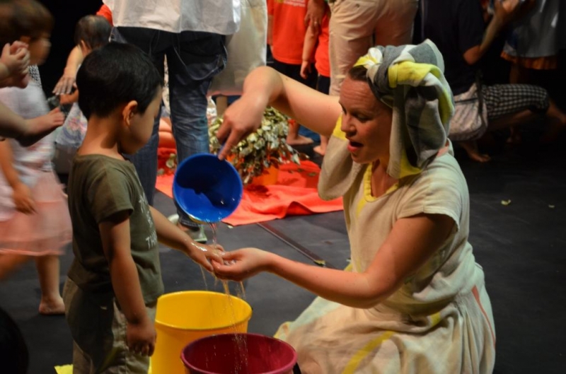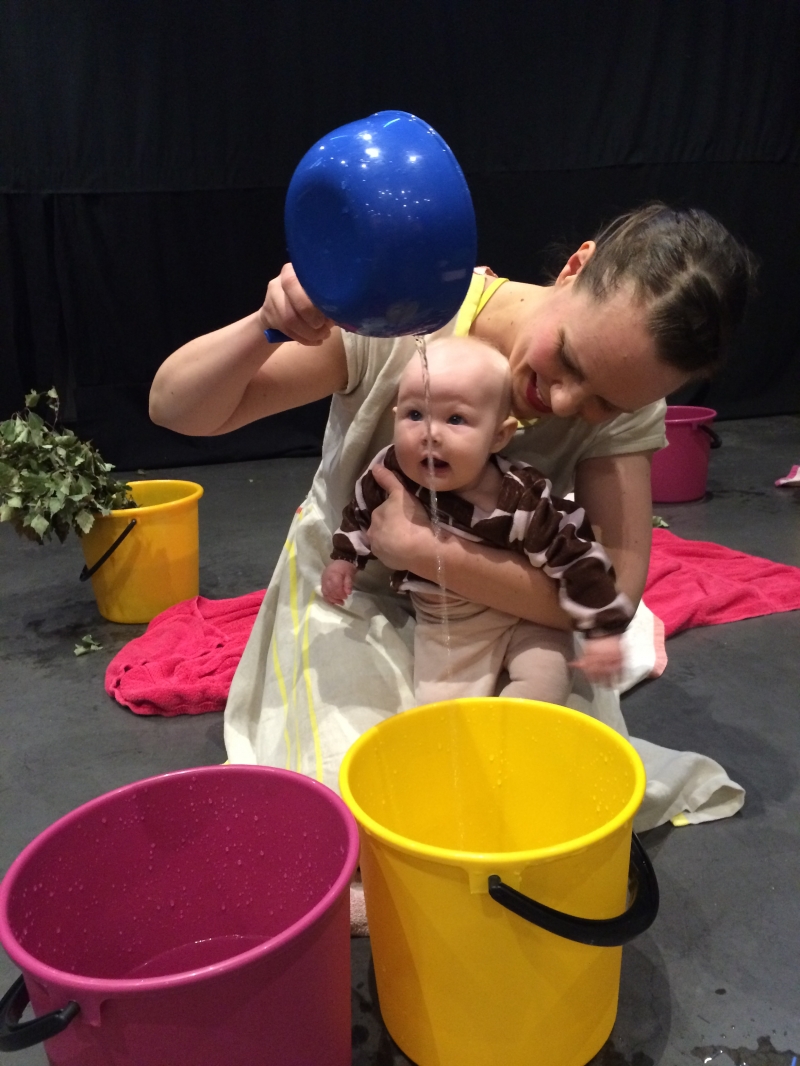 霧深い森の奥、そこはフィンランド人にとって、聖なる場所であるサウナ。スチームのシューッという小さな音、火がパチパチという音、水がはじけ、色とりどりのバケツが並び・・・。サウナを題材としたパフォーマンス。最後は観客のみなさんもサウナあそびを体験しましょう。