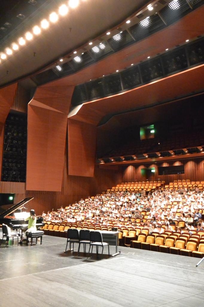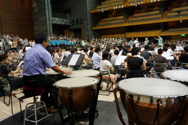 16時からは初めて合唱とオーケストラが合同での合奏を行いました。広上淳一さんによる指揮とご指導のもと練習が行われました。