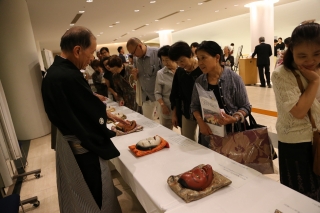 ロビーでは、実際に能面に手にとってごらんいただける「能面体験コーナー」もご用意しています。