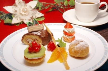 クリスマスらしいかわいいプチデザートの盛り合わせ。1階カフェ「燦(さん)」にて販売