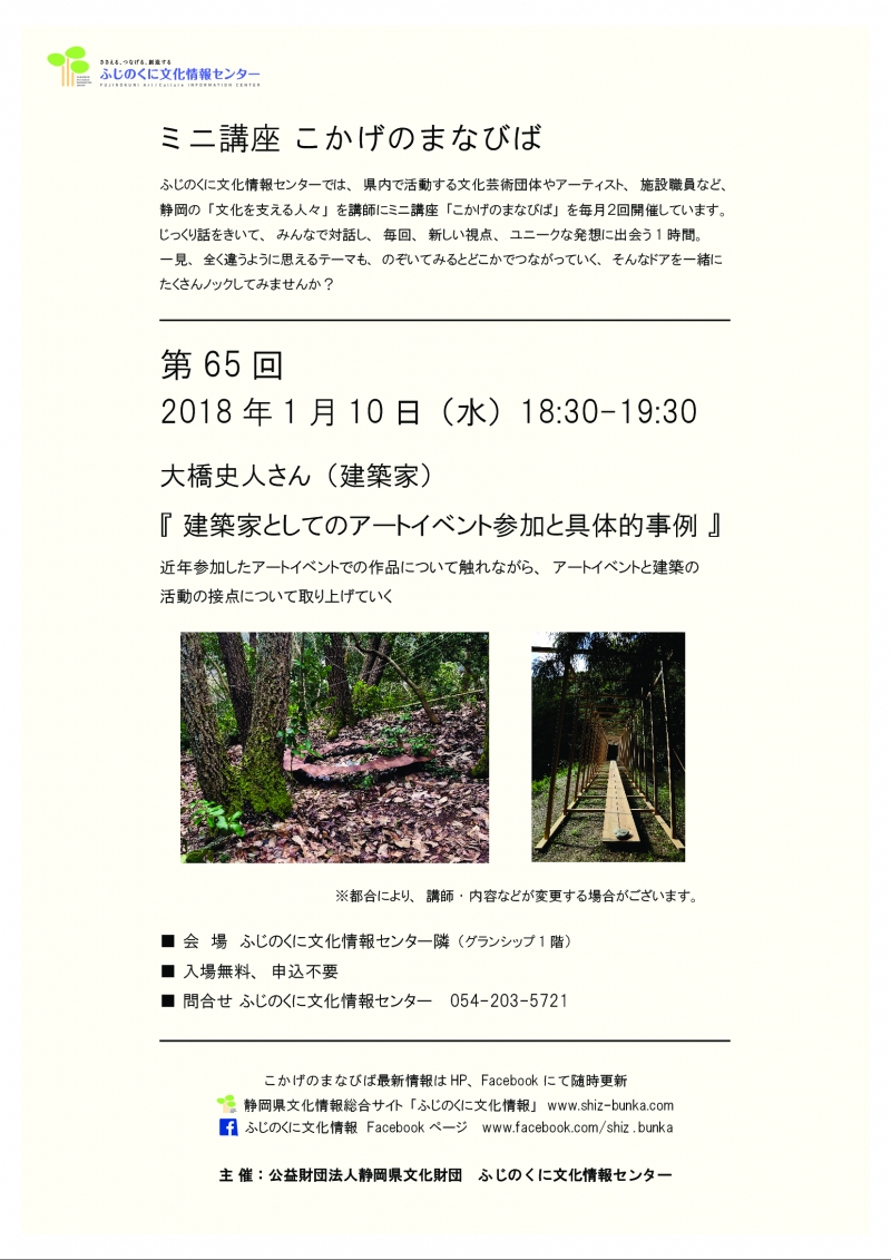 静岡の「文化を支える人々」を講師にミニ講座「こかげのまなびば」を毎月2回開催しています。