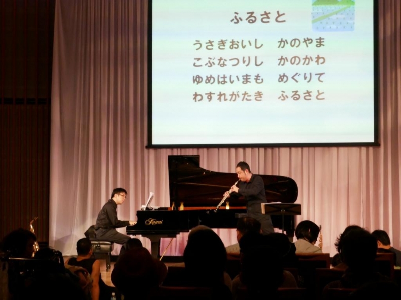 日本の唱歌やクラシックの名曲などを、楽器にまつわるトークをはさみながら演奏。観客が手拍子や歌で参加できるコーナーもあり、こどもも大人も一緒に生の音楽を楽しみました。