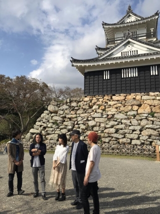 その後、気分転換も兼ねて、浜松城に散策に行きました。浜松市出身のケイタニーさんが、色々教えてくださる様子も。