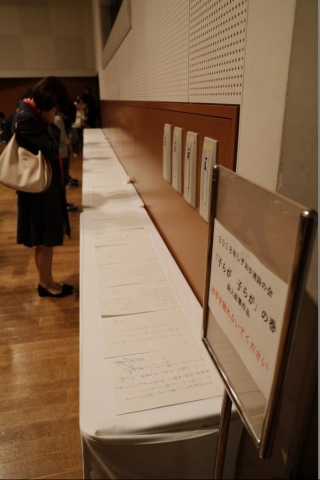 ロビーでは、書籍やCDの販売もしました。写真は準備が整ったタイミングでの様子ですが、休憩中、終演後は大変賑わい、完売となるものもいくつもありました。この会を通じて、ファンになりました!というお客様も。