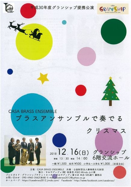 教会の響きや身近なクリスマスソングまで、親子で楽しめるブラスアンサンブル。初めての方も気軽に参加できるお話付きのコンサート。