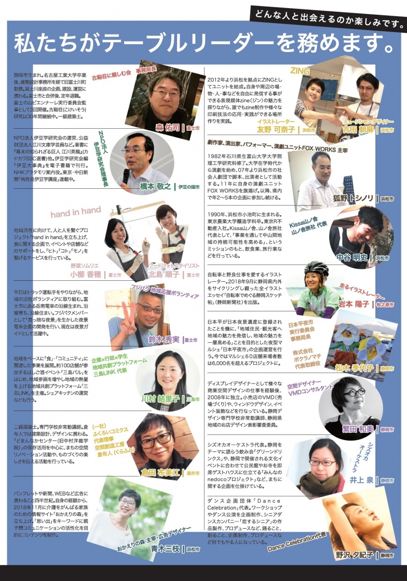 静岡県内の様々な分野で活躍する15組がテーブルゲストとして参加します。