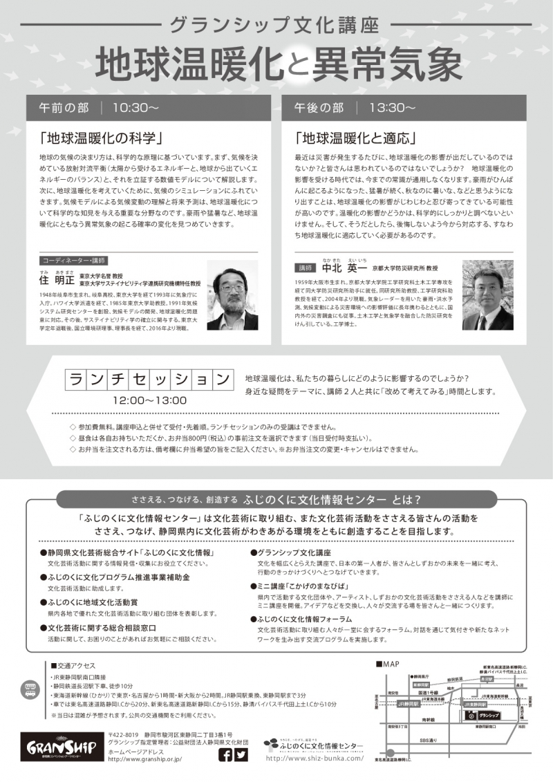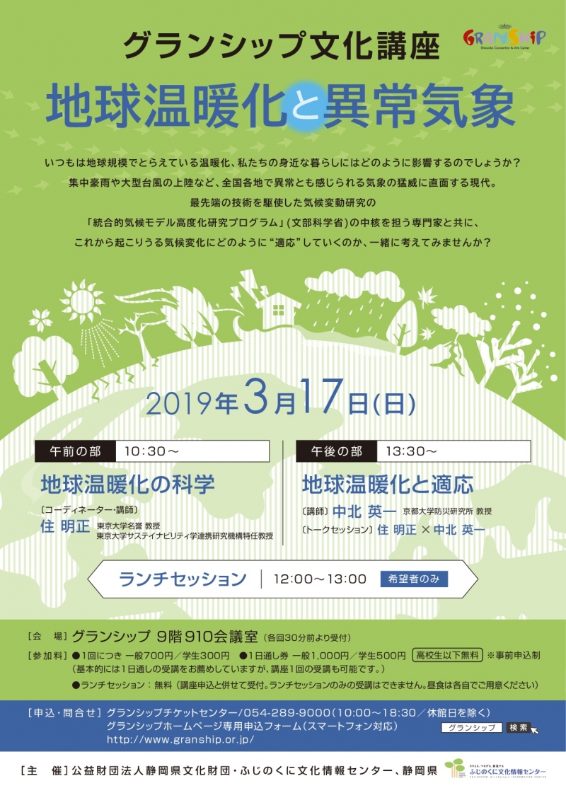最先端の技術を駆使した気候変動研究の「統合的気候モデル高度化研究プログラム」(文部科学省)の中核を担う講師と共に、これから起こりうる気候変化にどのように“適応”していくのか、一緒に考えてみませんか?