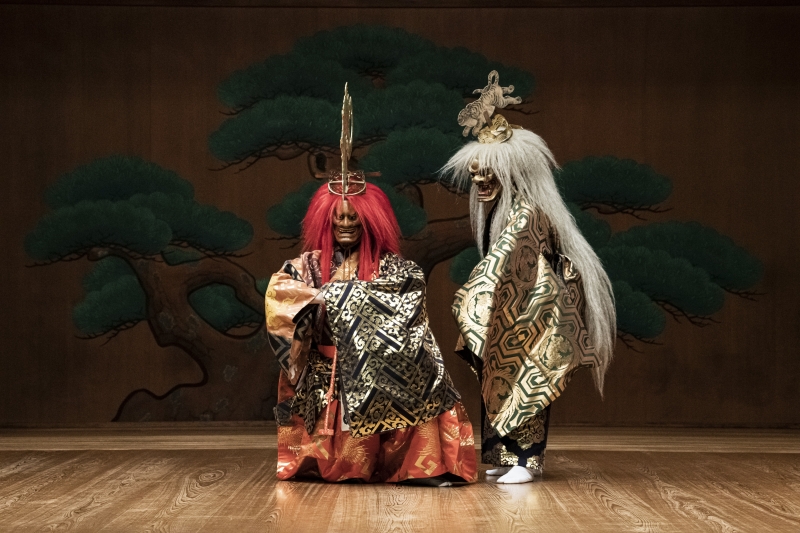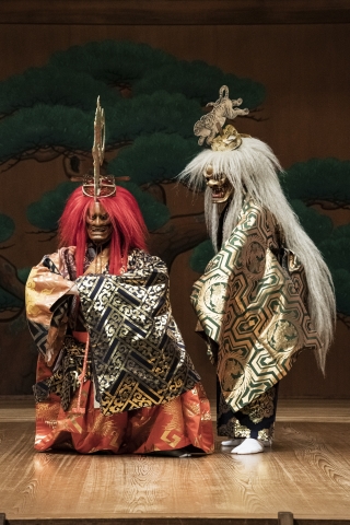 両シテが付ける龍と虎の被り物や、装束の美しさにもご注目。