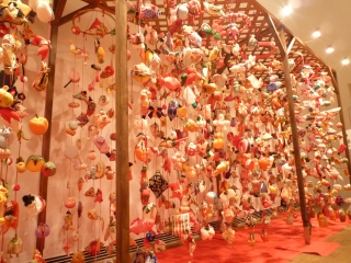 また、毎回楽しみにされている方も多い、富士宮本町商店街振興組合レディース会のみなさんによる華やかなつるし飾りがみなさんをお迎えします。