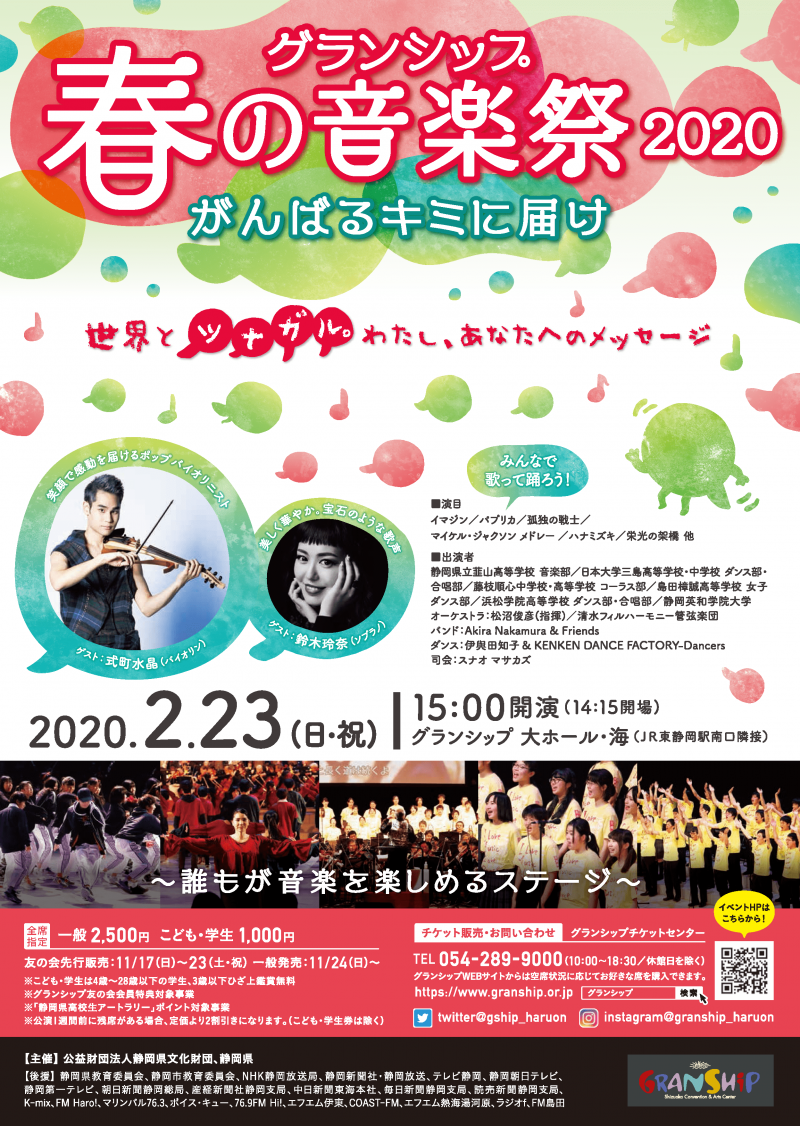 2020年2/23(日・祝)「グランシップ春の音楽祭2020 ~がんばるキミに届け~」の出演者をついに発表!!