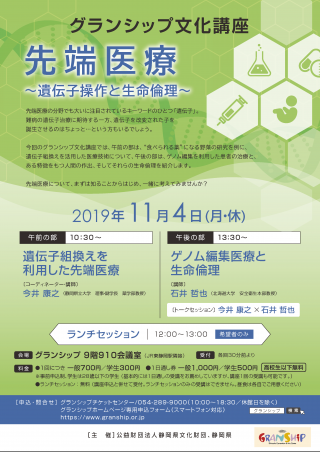グランシップ文化講座「先端医療~遺伝子操作と生命倫理~」