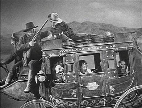 1885年、アリゾナからニューメキシコへ向かう駅馬車に、騎兵隊の夫を訪ねる妊娠中のルーシー(ルイーズ・プラット)、呑んだくれの医者ブーン(トーマス・ミッチェル)、町を追放された酒場女ダラス(クレア・トレヴァー)などそれぞれに事情を抱えた8人の男女が乗り合わせる。途中、脱獄囚のリンゴ・キッド(ジョン・ウェイン)も乗り込んだ駅馬車は次の町にたどり着くが、ルーシーの夫はインディアンに襲われていて……。