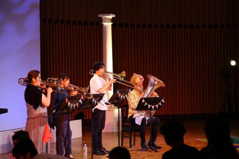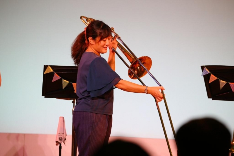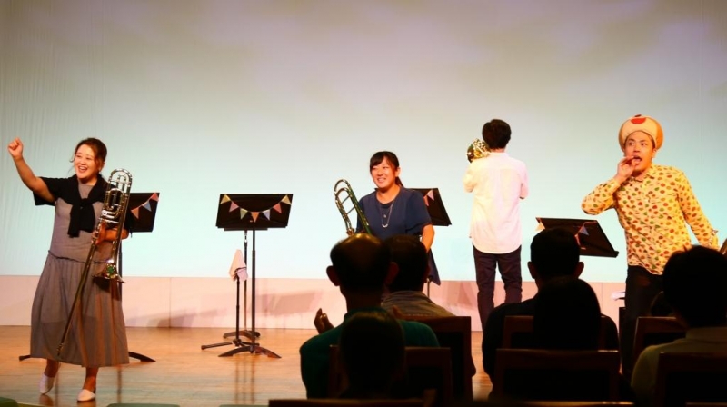 15日(日)はトロンボーン三本とテューバという低音楽器で構成された、栗ボーンカルテットが登場。みんなが知っているポップスや童謡、静岡人ならわかるローカルCMメドレーを披露。音楽を聴きながら、体を動かしたりダンスをする方も。楽器の説明や楽しいトークを挟みつつ、最後はオリジナル曲「サンバdeマロン」で盛り上がり、アンコールの「いがぐりブルース」では観客の皆さんとのコール&レスポンスも。