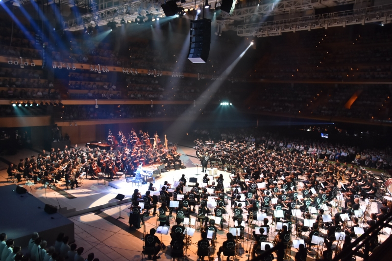 距離を保って配置されたオーケストラ奏者、動画投稿で会場に歌声を届ける「グランシップ音楽の広場リモート合唱団」に、豪華ゲストが加わり、会場が音楽でひとつに。