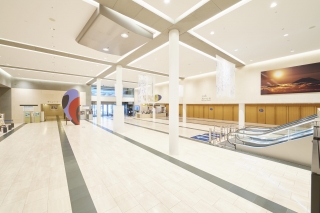 <コース概要>1階エントランス集合⇒パネル説明⇒大ホール3階⇒3階共通ロビー⇒6階交流ホール⇒6階回廊⇒中ホール前