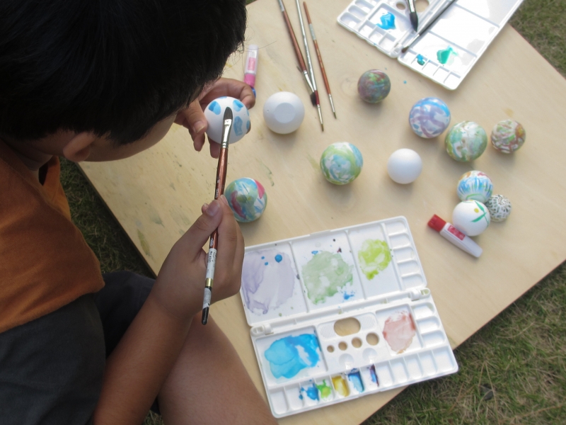 まるで惑星?水晶玉?石こうの球にペイントしてオブジェを作ろう。