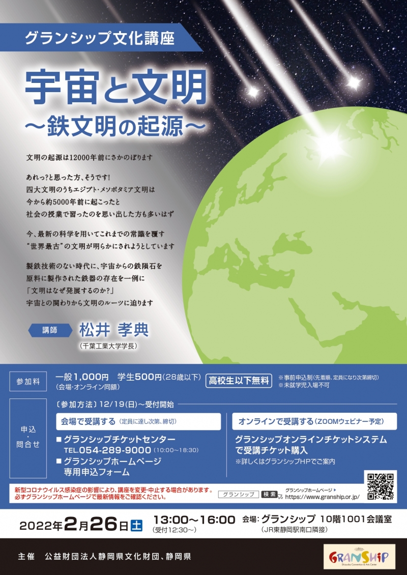 ・新型コロナウィルス感染症の影響により、講座を変更・中止する場合があります。必ずグランシップホームページで最新情報をご確認ください。 イベント時の感染防止策チェックリスト