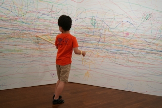 大きなえんぴつやクレヨンでどんな線が描けるかな