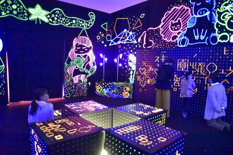 黒い部屋で光る輪ゴムを組み合わせて何ができるかな