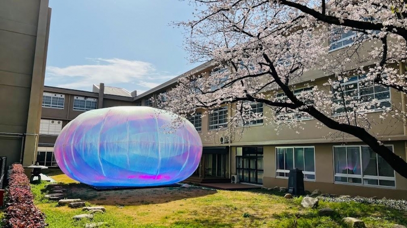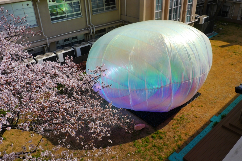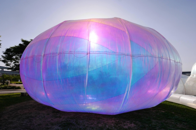 グランシップ広場に、奥中章人さんによる大きなくうきのオブジェ「INTER-WORLD/SPHERE」が登場!写真撮影もおすすめ!