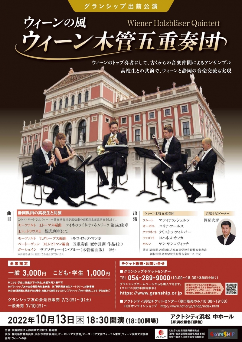 ※このコンサートでは、ウィーン木管五重奏団が浜松市の高校生と交流演奏をします。