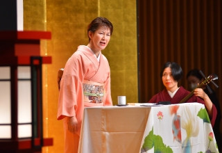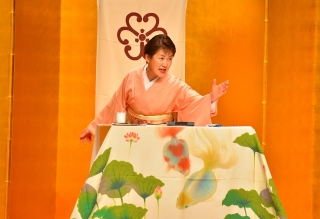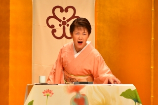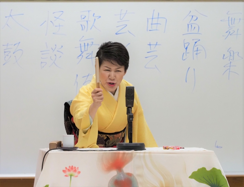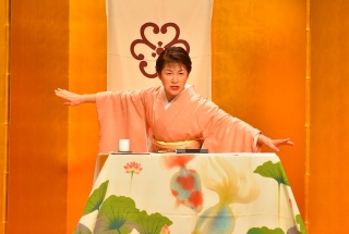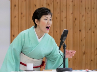 奈々福さんが、声・表情・身振りも多彩に、登場人物たちをユーモアたっぷりに演じ分けます。