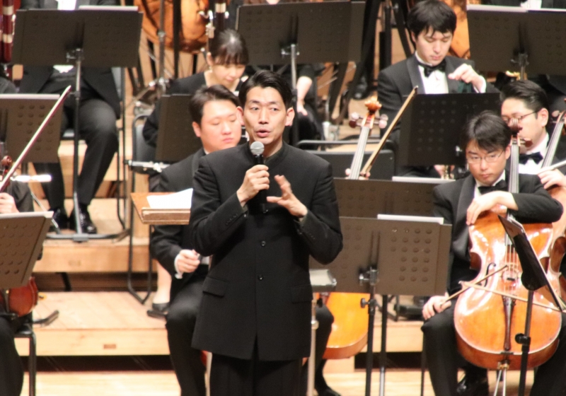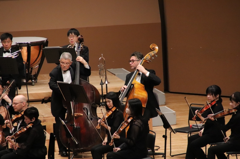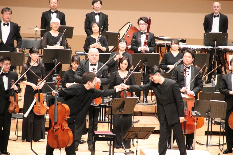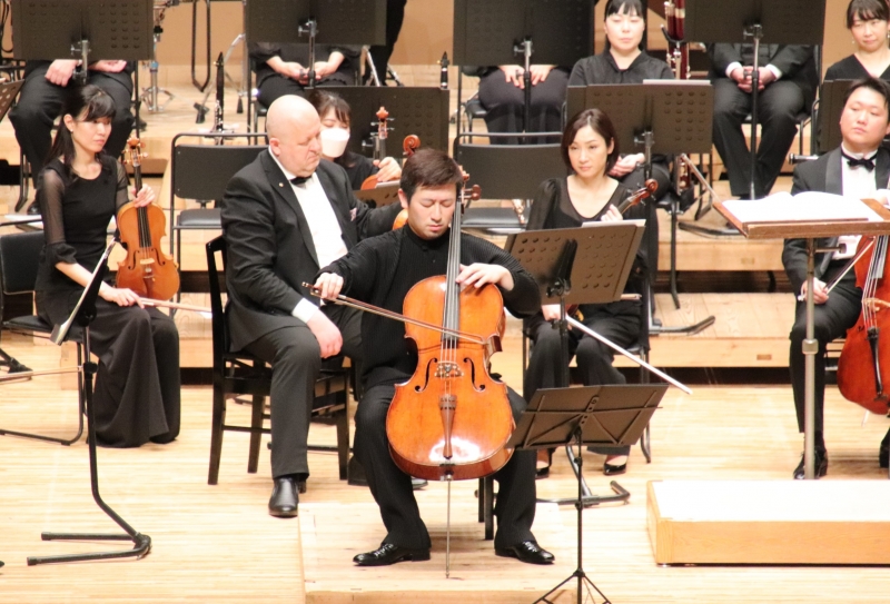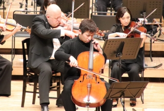 個性豊かな4つの曲から成るドビュッシーの「小組曲」に気分が高まったところで、宮田大さんが登場。演奏されたのはカバレフスキーのチェロ協奏曲第1番ト短調。宮田さんが「一番大好きなチェロ協奏曲」と演奏を熱望していたこの曲を、1698年製のストラディヴァリウスのチェロ“Cholmondeley”で超絶技巧を駆使しながら情感たっぷりに演奏。ソリスト・アンコールは柔らかく優雅な音色のサン=サーンス「白鳥」。その余韻が残るまま迎えた第二部はモーツァルトの世界。歌劇「フィガロの結婚」序曲で軽やかに幕を開け、モーツァルトの三大交響曲のひとつである交響曲第41番ハ長調「ジュピター」を堂々たる演奏で披露。角田マエストロの指揮によってオーケストラ・アンサンブル金沢の本領が遺憾なく発揮され、小編成ながら会場の隅々まで届く迫力ある響きに観客は称賛の拍手を贈りました。