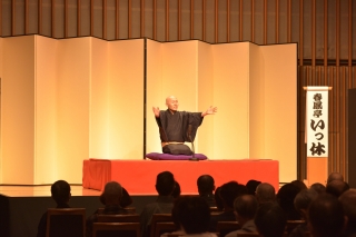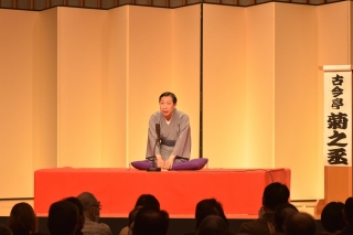 共に古今亭圓菊師匠(島田市出身)に入門した兄弟弟子の二人が揃ってグランシップのステージに登場。春風亭いっ休さんによる開口一番の後、2017年以来の出演となる古今亭菊之丞さんは、「長短」で気の短い江戸っ子と関西生まれの気の長い男という対照的な二人を巧みに演じ分け笑いを誘った。続くグランシップ寄席初登場の古今亭文菊さんは、酒の肴を巡る騒動「猫の災難」をテンポの良い語り口で披露。仲入り後も、文菊さんが独特の軽妙な持ち味で語る「熊の皮」に会場が沸き、トリは菊之丞さんが廓噺の人気演目「明烏」を雰囲気たっぷりに演じ、静岡の落語ファンの期待に応えた。