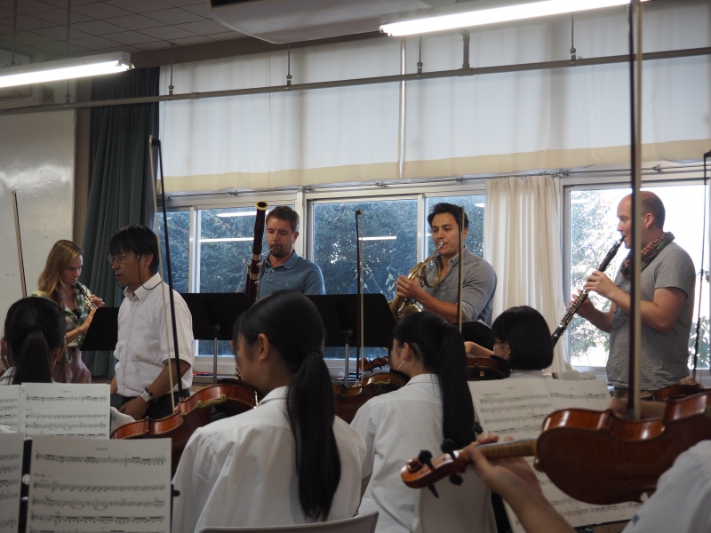 静岡市清水区にある、静岡県立清水南高等学校・同中等部を訪問し、10月6日にグランシップで開催される「ウィーン木管五重奏団」の演奏会に出演する同校管弦楽部の練習風景を見学させていただきました!