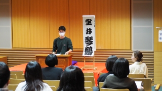 公演に付随し、レクチャーなどの機会を通じて、県内の大学生に伝統芸能の魅力について触れ、知ってもらう機会を提供しています。