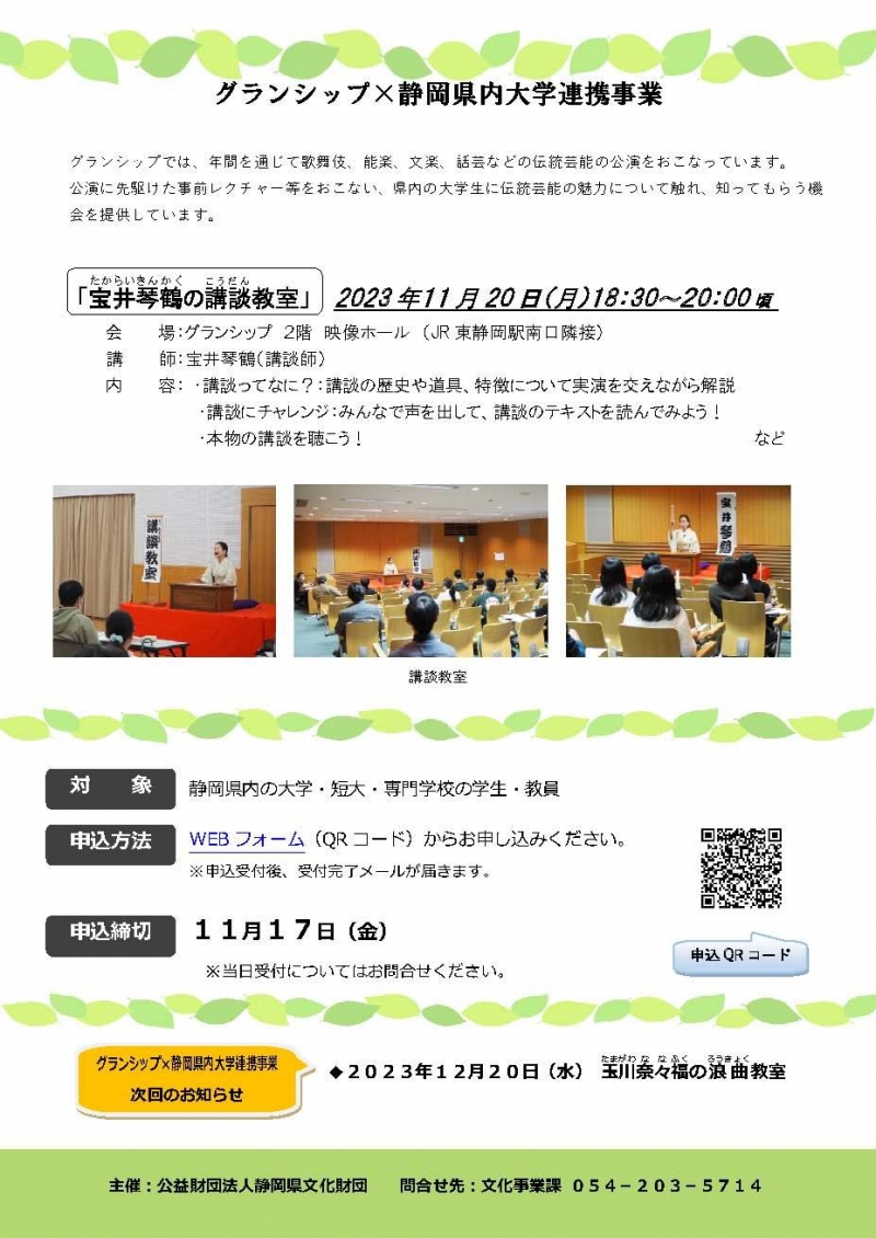 ※本公演は、県内の大学・短大・専門学校の学生及び教員を対象としています。