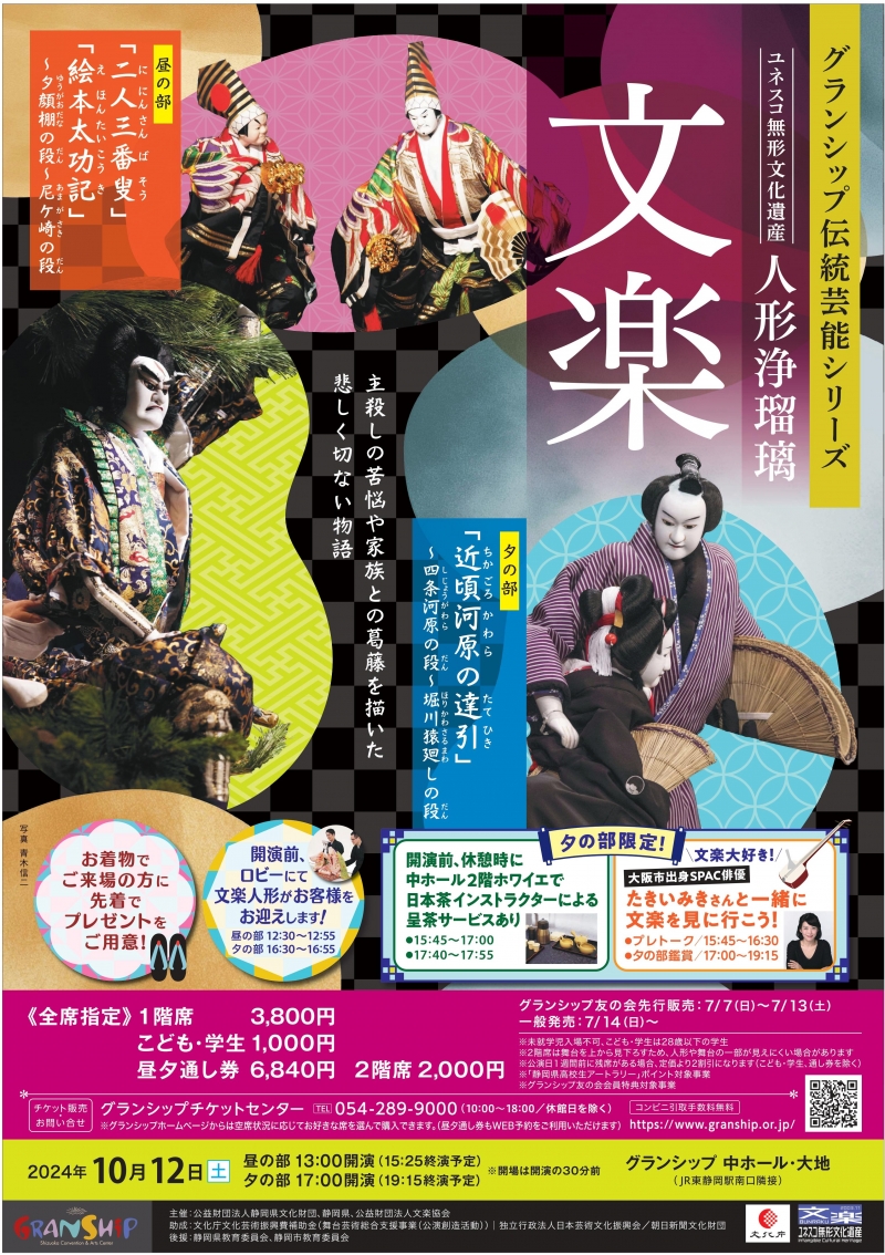 | 主催 | 公益財団法人静岡県文化財団、静岡県、公益財団法人文楽協会 |