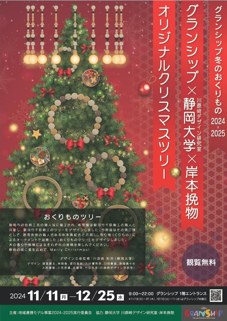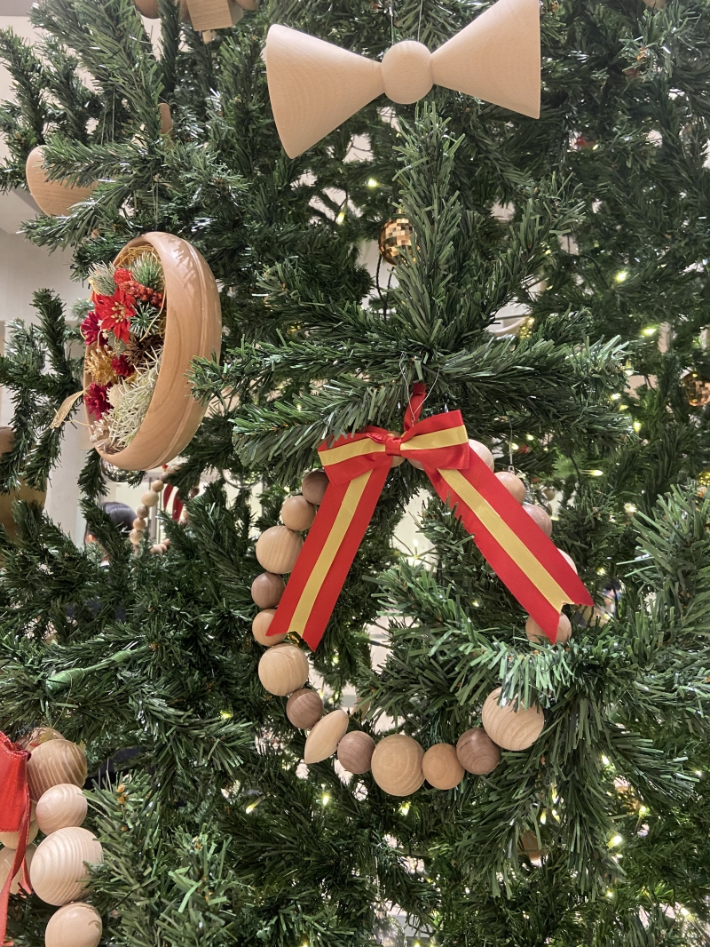 2023年の駿河竹千筋細工に引き続き、静岡市の伝統工芸である「挽物」を使用したオリジナルオーナメントで装飾した和モダンなクリスマスツリーがグランシップにご来館のお客様をお迎えいたします。