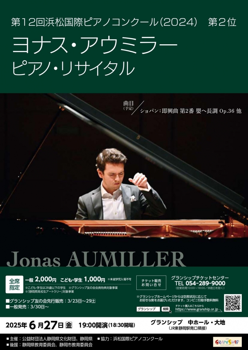 2024年11月に6年ぶりの開催となった第12回浜松国際ピアノコンクールで第2位となったドイツ出身のピアニスト、ヨナス・アウミラー。