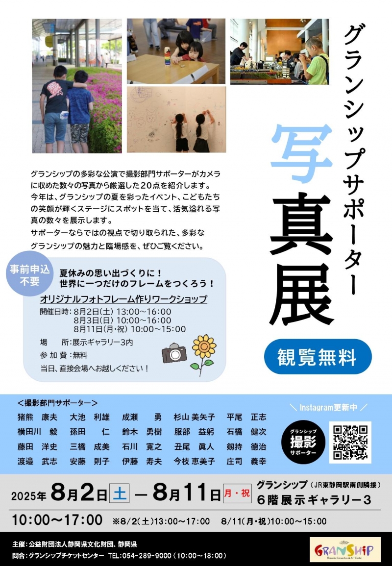 今年は、グランシップの夏を彩ったイベント、こどもたちの笑顔が輝くステージにスポットを当て、活気溢れる写真の数々を展示。