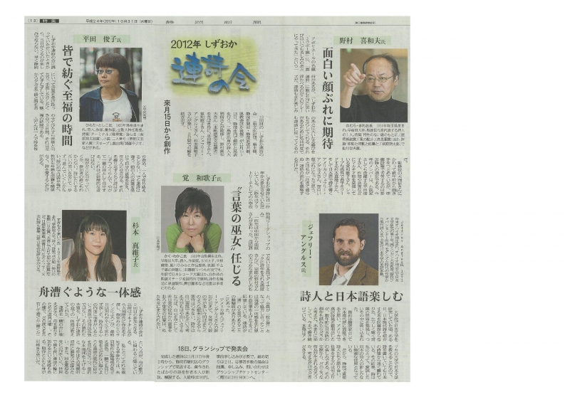 静岡新聞に掲載「2012年しずおか連詩の会」