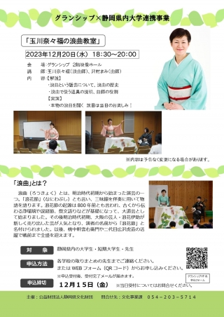 グランシップ×静岡県内大学連携事業「玉川奈々福の浪曲教室」